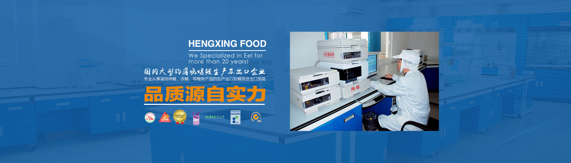 江西恒興食品有限公司是外商獨資企業(yè),注冊資本1050萬美元。專業(yè)從事蒲燒烤鰻、凍鰻、等鰻魚產品的生產、出口及鰻苗進出口貿易二十多年,是國內領先,品質一流的蒲燒烤鰻生產及出口企業(yè)。多次被授予"省級龍頭""出口十強企業(yè)"等榮譽。公司總部位于福建省福清市,在江西省撫州市和福建省福清市建立有兩個現(xiàn)代化的生產加工廠和中國大陸主要的鰻苗培育中心。目前,公司已經(jīng)順利通過了:美國HACCP, 歐盟EEC,ISO9001, ISO22000, 英國BRC,HALAL等質量體系認證。